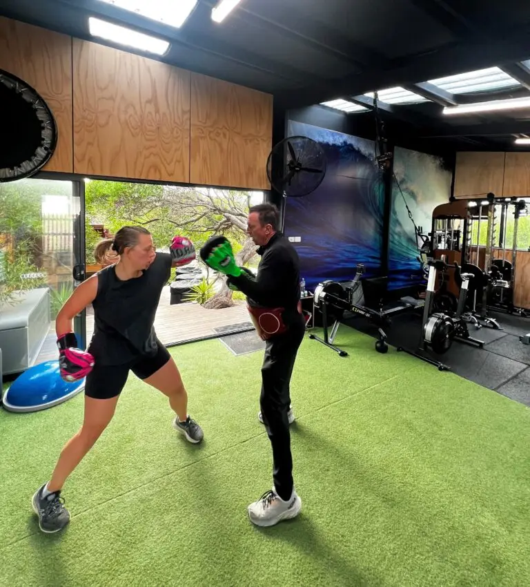 Monica and Matt relocated to Tasmania in 2019 with their kids Max and Ally, where they now run Breathe In Studio at Carlton Beach, offering wellness programs that include breathwork, ice baths, infrared saunas, and personal training.